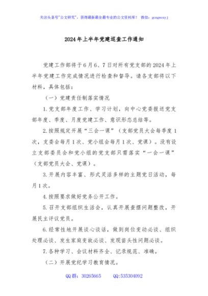 / 2024年上半年党建巡查工作通知