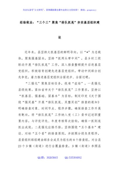 经验做法:“三个三”聚焦“排队抓尾”夯实基层组织建设
