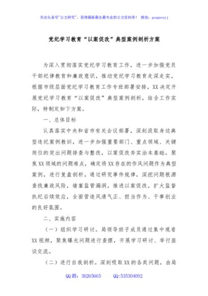 / 党纪学习教育“以案促改”典型案例剖析方案