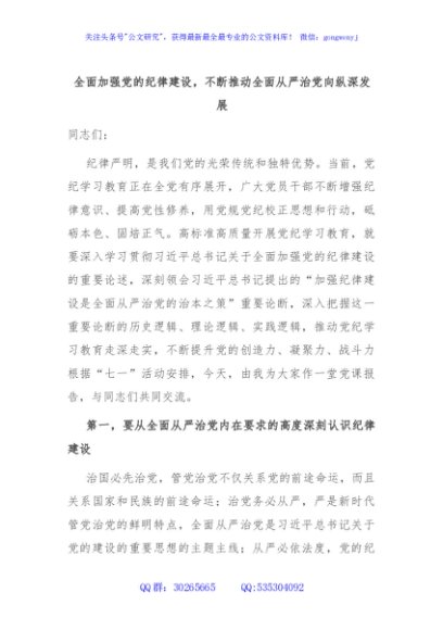 全面加强党的纪律建设,不断推动全面从严治党向纵深发展