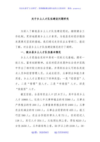 / 关于乡土人才队伍建设问题研究