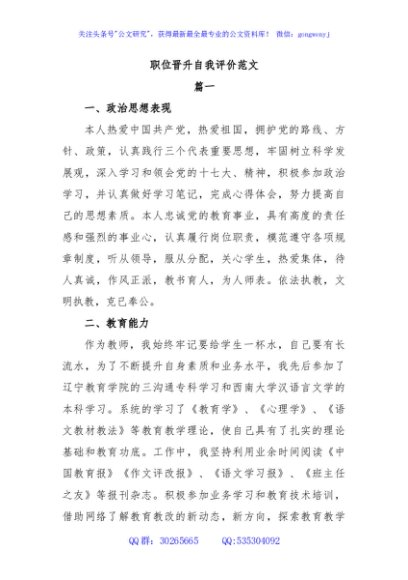 / 职位晋升自我评价范文