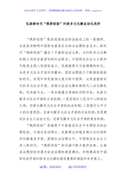 / 弘扬新时代“枫桥经验”纠纷多元化解法治化浅析