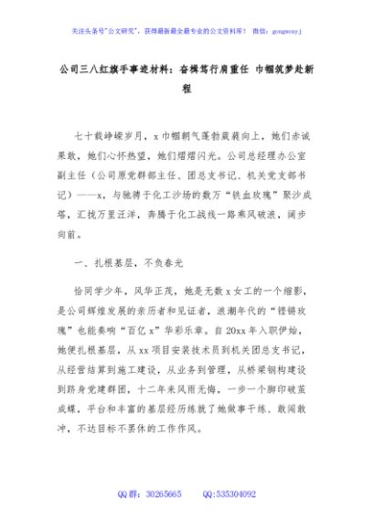 / 公司三八红旗手事迹材料:奋楫笃行肩重任 巾帼筑梦赴新程