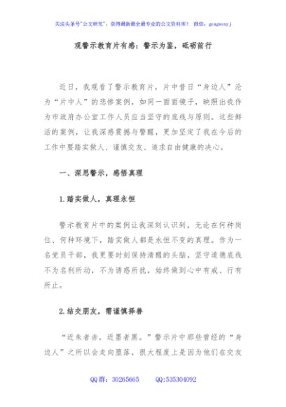 / 观警示教育片有感:警示为鉴,砥砺前行