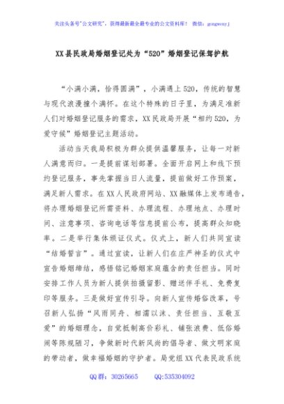 / XX县民政局婚姻登记处为“520”婚姻登记保驾护航