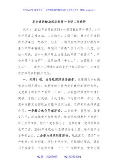/ 县交通运输局派驻村第一书记工作感悟