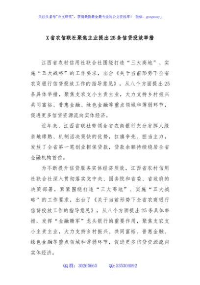 / X省农信联社聚焦主业提出25条信贷投放举措