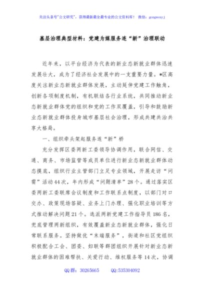 / 基层治理典型材料:党建为媒服务连“新”治理联动