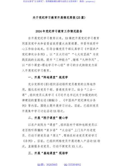 / (25篇)关于党纪学习教育开展情况简报