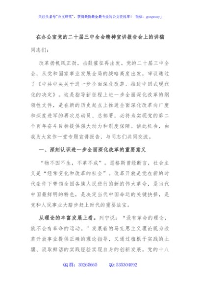 / 在办公室党的二十届三中全会精神宣讲报告会上的讲稿