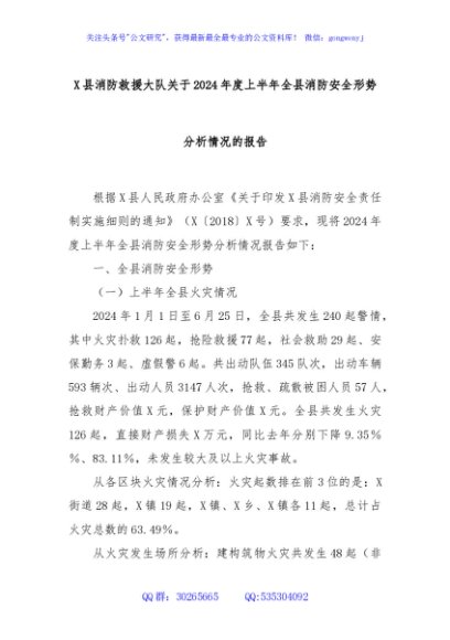 / X县消防救援大队关于2024年度上半年全县消防安全形势分析情况的报告