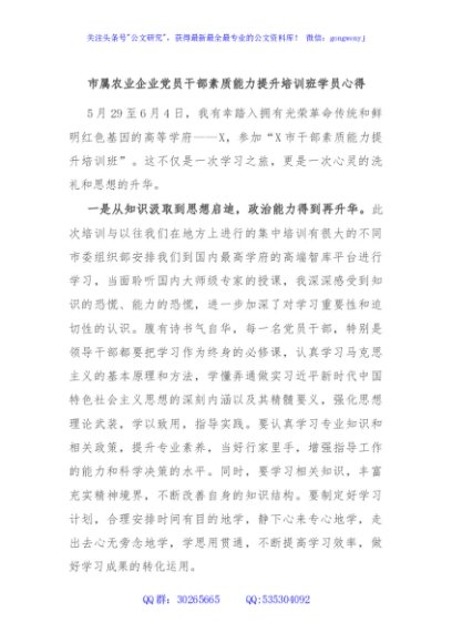 / 市属农业企业党员干部素质能力提升培训班学员心得