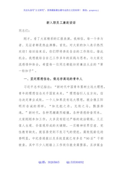 / 新入职员工廉政谈话