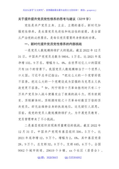 / 关于提升提升党员党性修养的思考与建议(3219字)
