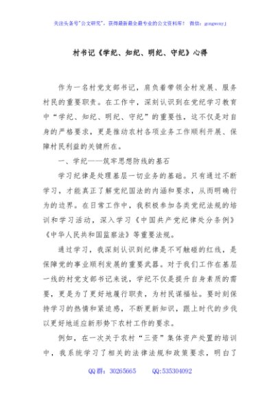 / 村书记《学纪、知纪、明纪、守纪》心得