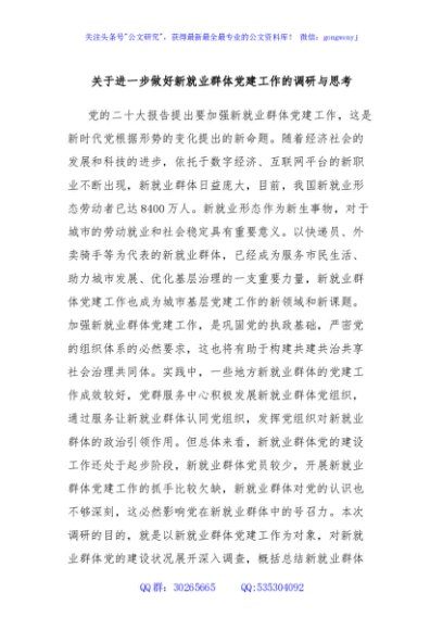 / 关于进一步做好新就业群体党建工作的调研与思考