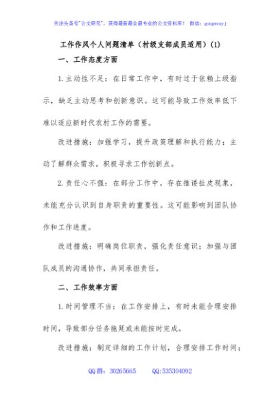 / 工作作风个人问题清单(村级支部成员适用)(1)