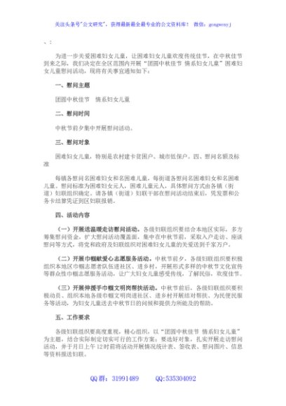 / 关于开展中秋节慰问困难妇女儿童活动的通知