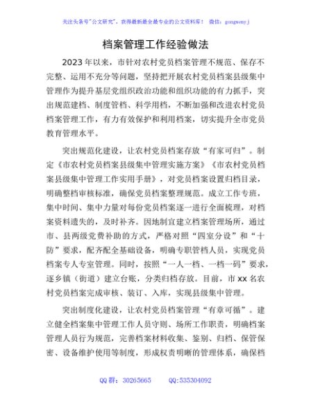 / 档案管理工作经验做法