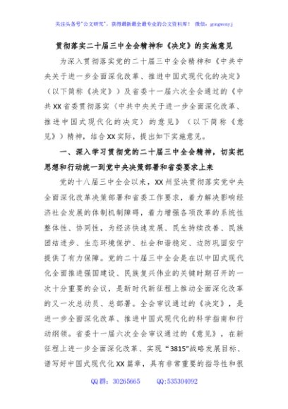 / 贯彻落实二十届三中全会精神和《决定》的实施意见