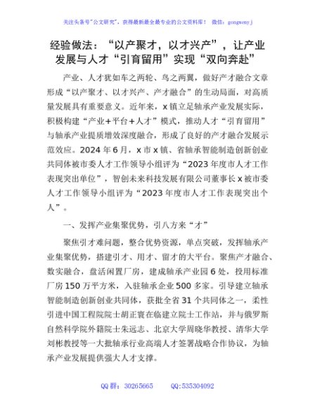 经验做法:“以产聚才,以才兴产”,让产业发展与人才“引育留用”实现“双向奔赴”