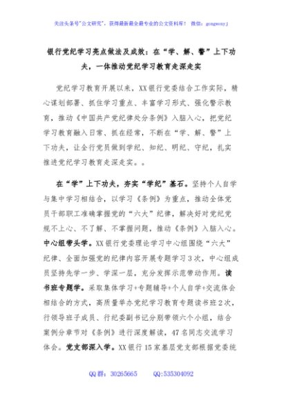 / 银行党纪学习亮点做法及成效:在“学、解、警”上下功夫,一体推动党纪学习教育走深走实