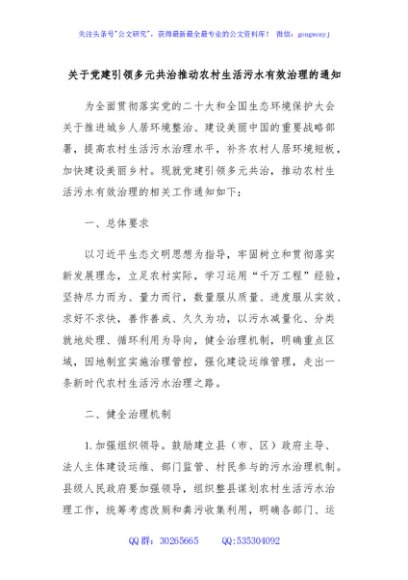 / 关于党建引领多元共治推动农村生活污水有效治理的通知