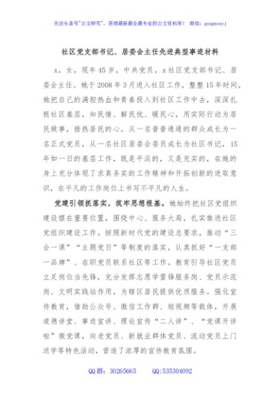 / 社区党支部书记、居委会主任先进典型事迹材料