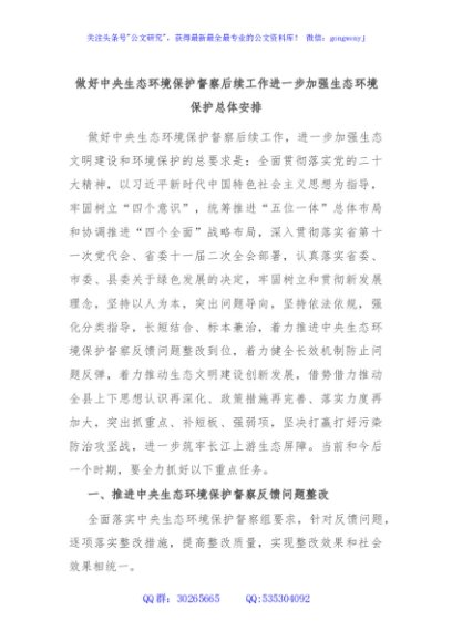 / 做好中央生态环境保护督察后续工作进一步加强生态环境保护总体安排