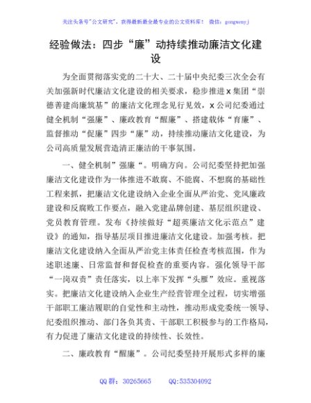 / 经验做法:四步“廉”动 持续推动廉洁文化建设