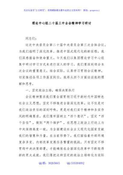 理论中心组二十届三中全会精神学习研讨