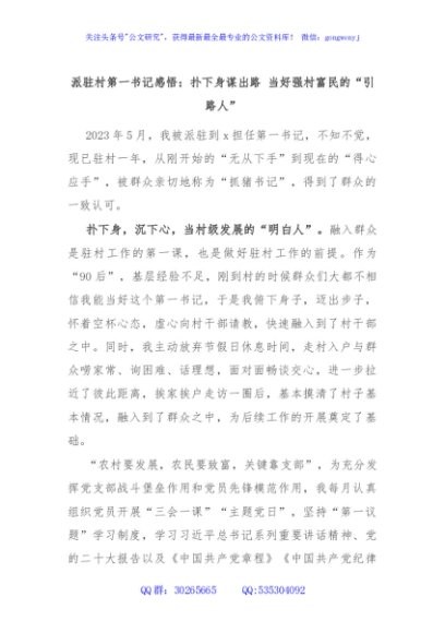 / 派驻村第一书记感悟:扑下身谋出路 当好强村富民的“引路人”
