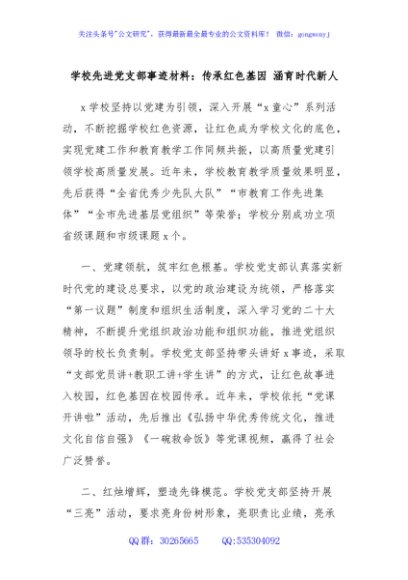 / 学校先进党支部事迹材料:传承红色基因 涵育时代新人
