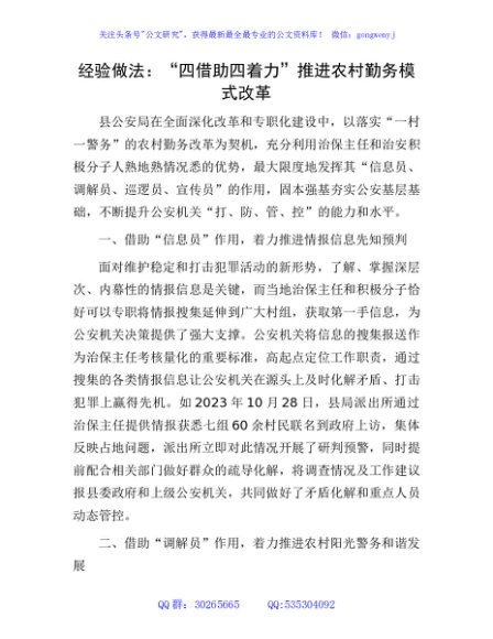 / 经验做法:“四借助四着力”推进农村勤务模式改革