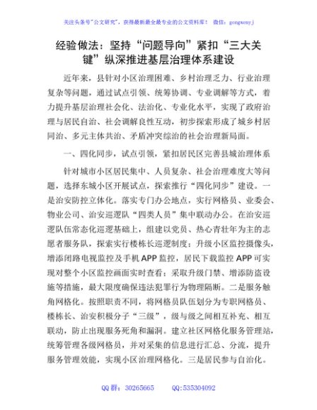 / 经验做法:坚持“问题导向 ”紧扣“三大关键” 纵深推进基层治理体系建设