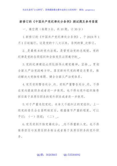 / 新修订的《中国共产党纪律处分条例》测试题及参考答案