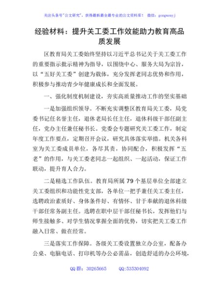 / 经验材料:提升关工委工作效能 助力教育高品质发展