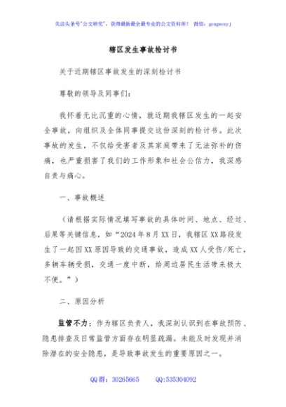 / 辖区发生事故检讨书