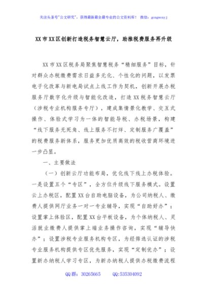 / XX市XX区创新打造税务智慧云厅,助推税费服务再升级