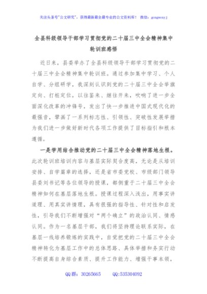 / 全县科级领导干部学习贯彻党的二十届三中全会精神集中轮训班感悟