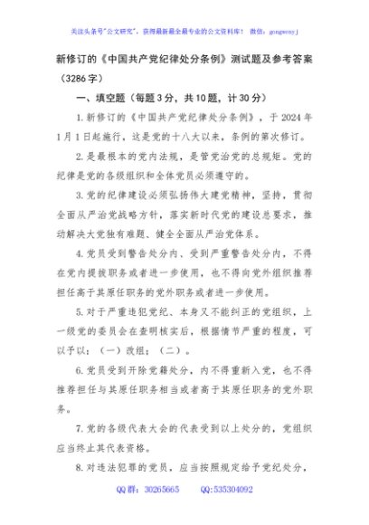 / 新修订的《中国共产党纪律处分条例》测试题及参考答案(3286字)