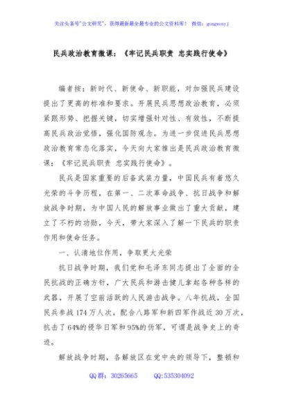 民兵政治教育微课:《牢记民兵职责 忠实践行使命》