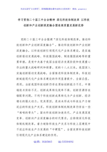 学习贯彻二十届三中全会精神 深化科技体制改革 以科技创新和产业创新深度融合塑造高质量发展新优势