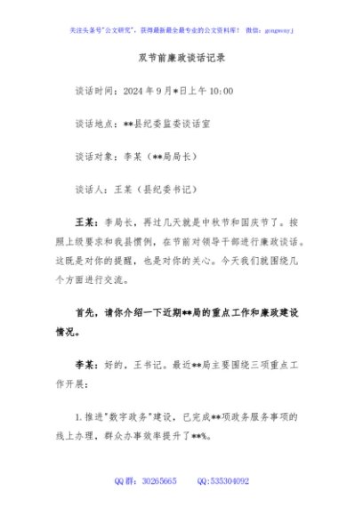 双节前廉政谈话记录