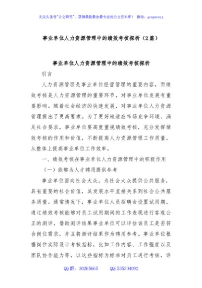(2篇)事业单位人力资源管理中的绩效考核探析