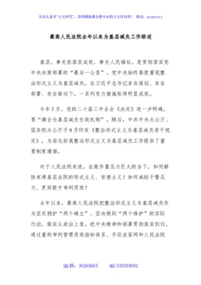 / 最高人民法院去年以来为基层减负工作综述