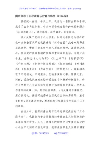 / 国企领导干部观看警示教育片感悟(2146字)