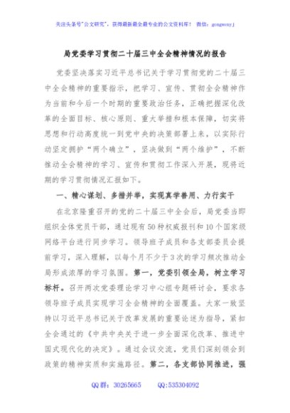 / 局党委学习贯彻二十届三中全会精神情况的报告