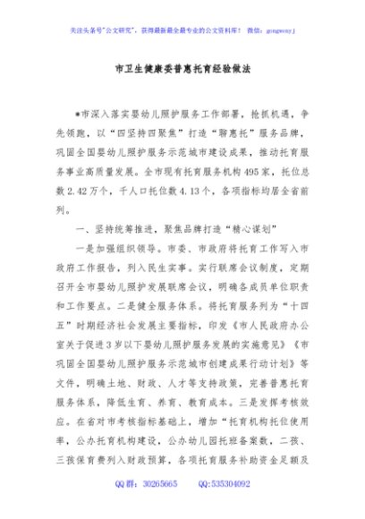 / 市卫生健康委普惠托育经验做法